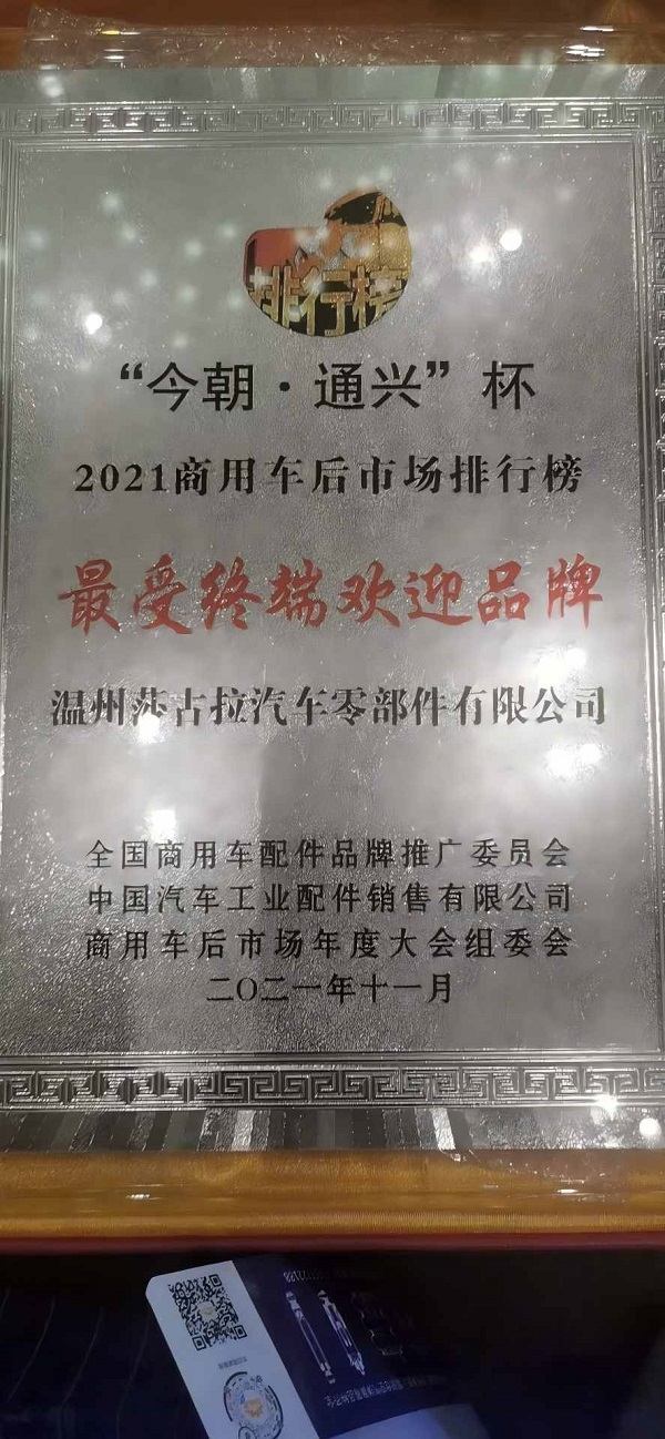 Wenzhou Shagula Auto Parts Co., Ltd., is proud to announce it was presented with a top industry honor at the 2021 China Commercial Vehicle Aftermarket (CCVAC) Annual Conference.